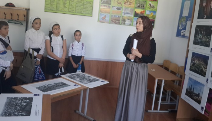 Зав. передвижной выставки Байдаева Луиза и научный сотрудник Даудова Макка ( Национальный музей ЧР)