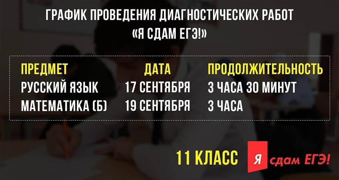 Представляем вашему вниманию даты проведение диагностических работ по русскому языку и математике в рамках проекта «Я сдам ЕГЭ!».
