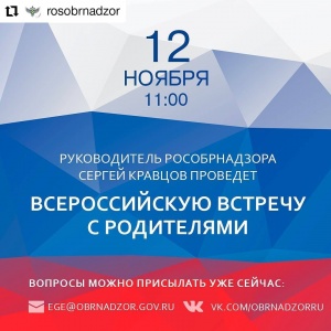 09.11.201912 ноября на Всероссийской встрече с родителями руководитель Рособрнадзора Сергей Кравцов и профильные специалисты ответят на все вопросы об организации и проведении в 2020 году ЕГЭ и ГИА-9, НИКО и ВПР, а также об исследованиях по стандартам PISA.