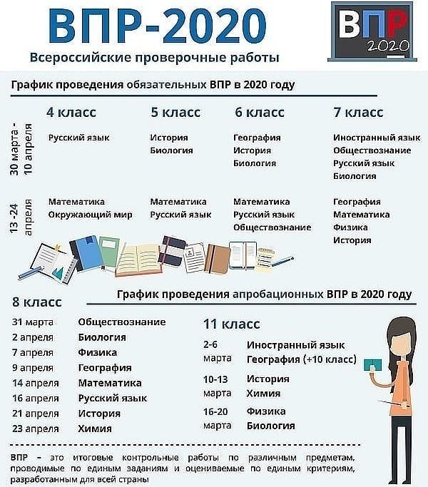 04.03.2020Рособрнадзор разработал методические рекомендации по проведению Всероссийских проверочных работ (ВПР). В них описаны цели ВПР, сбор информационного обмена при проведении проверочных работ, этапы, контроль, а также сроки проведения, обработки результатов и хранения работ. Методические материалы направлены во все общеобразовательные организации республики. Также Методические рекомендации по проведению Всероссийских проверочных работ и Приказ министерства образования и науки Чеченской Республики от 04.02.2020г. №172-п «О проведении Всероссийских проверочных работ в Чеченской Республике в 2020 году» размещен на сайте Центра оценки качества образования. Активная ссылка на сайт в описании профиля.
