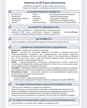 15.06.2020Расскажите выпускникам, что в 2020 году можно сдать ЕГЭ только по тем предметам, которые нужны для поступления в вуз. Количество предметов неограниченно. Результаты экзамена не влияют на отметки в аттестате. Ученики 10-х классов, которые завершили в 2019–2020 учебном году освоение отдельных предметов, сдавать ЕГЭ в 2020 году не будут.