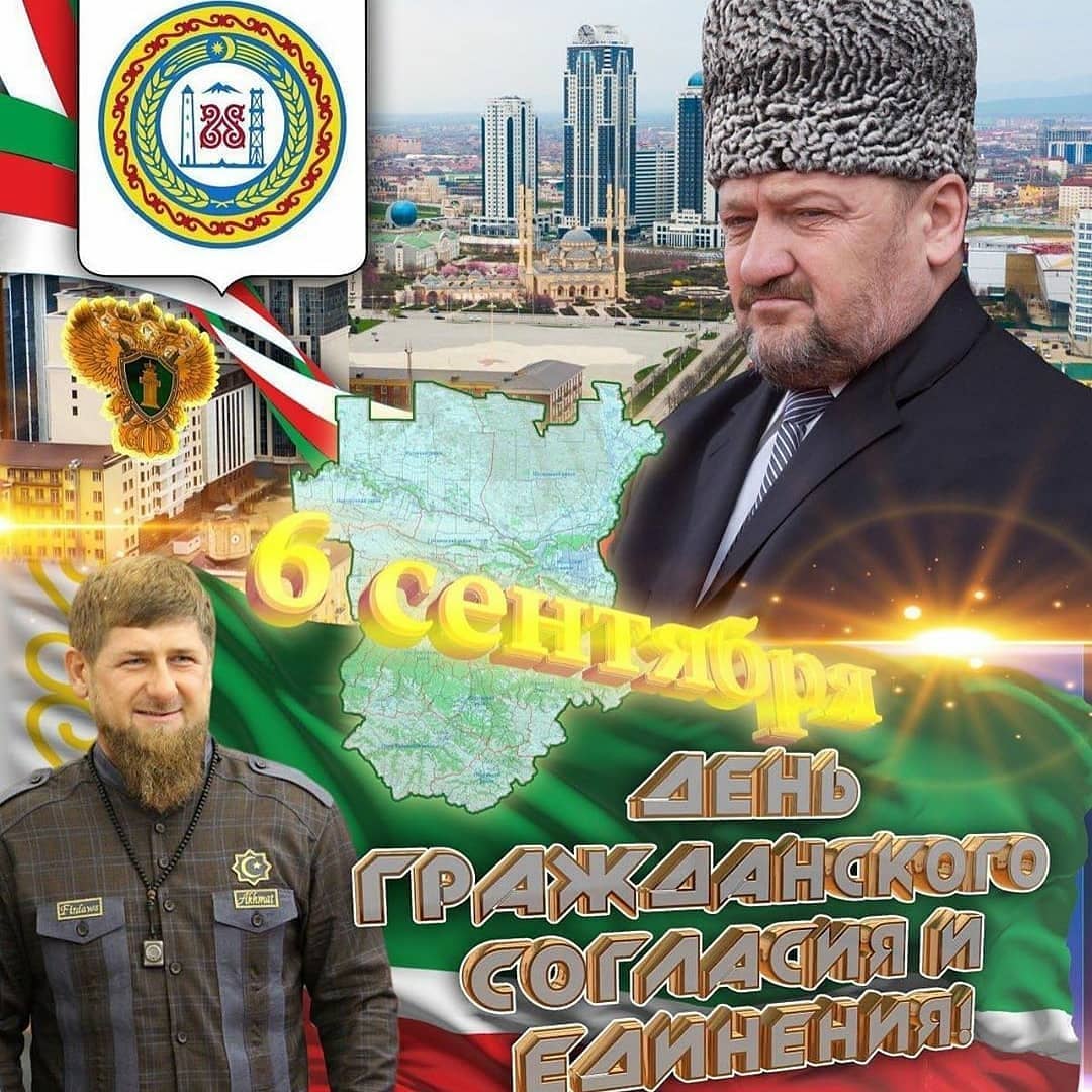 06.09.2020С ДНЕМ ЧЕЧЕНСКОЙ РЕСПУБЛИКИ, который воистину является ДНЕМ СОГЛАСИЯ, ЕДИНЕНИЯ И ПРИМЕРЕНИЯ представителей всех народов, населяющих ее!Это особо важный праздник имеет место быть благодаря инициативе Первого Президента ЧР, Героя России АХМАТ-ХАДЖИ КАДЫРОВА (ДАЛА ГIАЗОТ КЪОБАЛ ДОЙЛА ЦУЬНАН)!Желаем всем мира, стабильности, истинного счастья, процветания и благополучия!