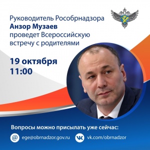 08.10.202019 октября в 11:00 по Москве руководитель Рособрнадзора Анзор Музаев проведет Всероссийскую встречу с родителями.