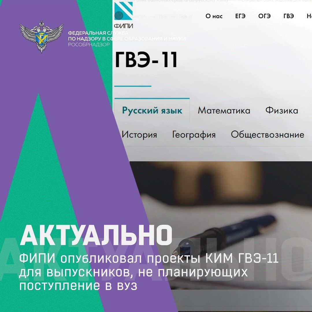12.02.2021Федеральный институт педагогических измерений (ФИПИ) опубликовал на своем сайте проекты контрольных измерительных материалов (КИМ) государственного выпускного экзамена (ГВЭ), который будут сдавать для получения аттестата выпускники 11 классов, не планирующие поступление в вузы. С ними можно ознакомиться в разделе "ГВЭ": https://fipi.ru/gve/gve-11