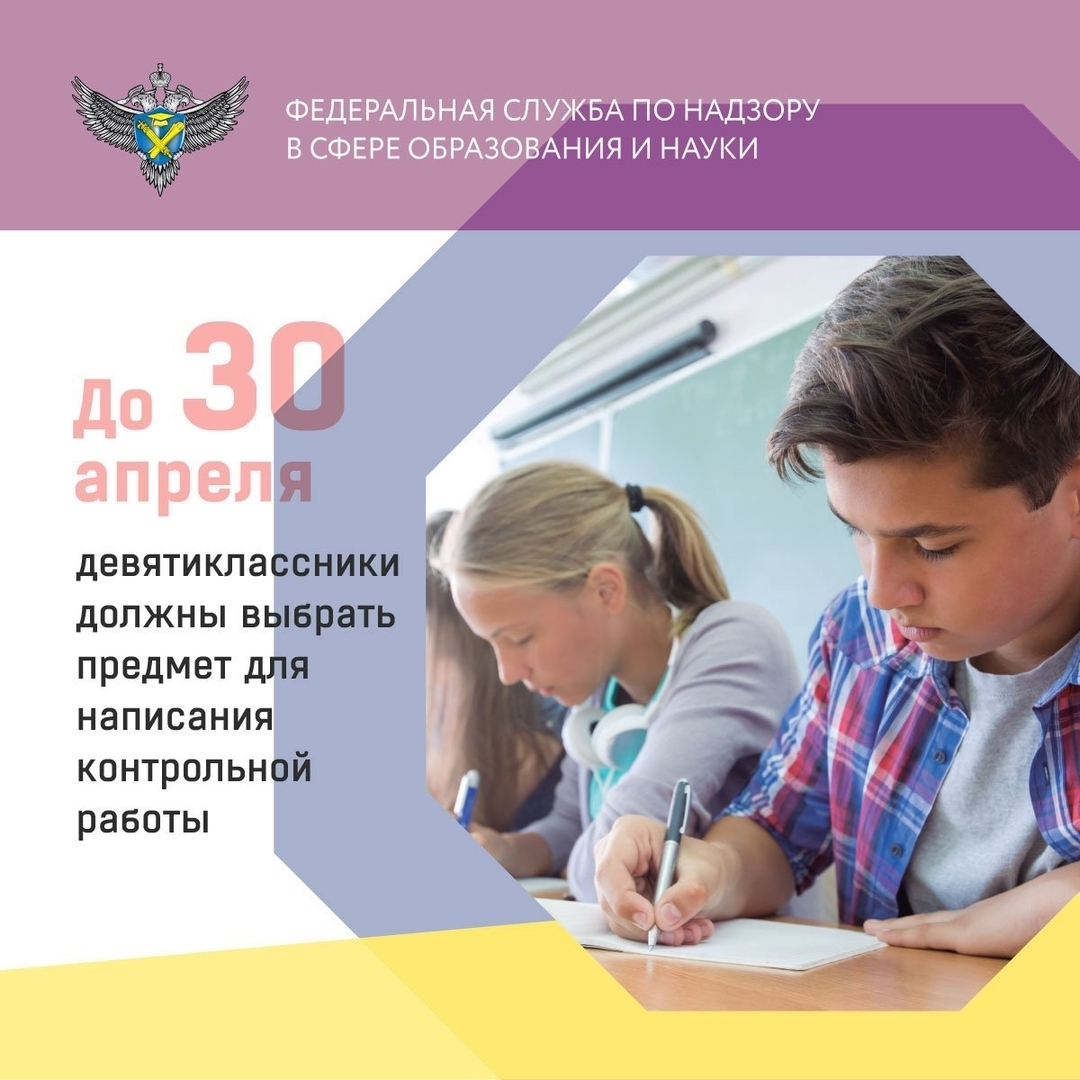 Девятиклассники должны выбрать предмет для написания контрольной работы до 30 апреля