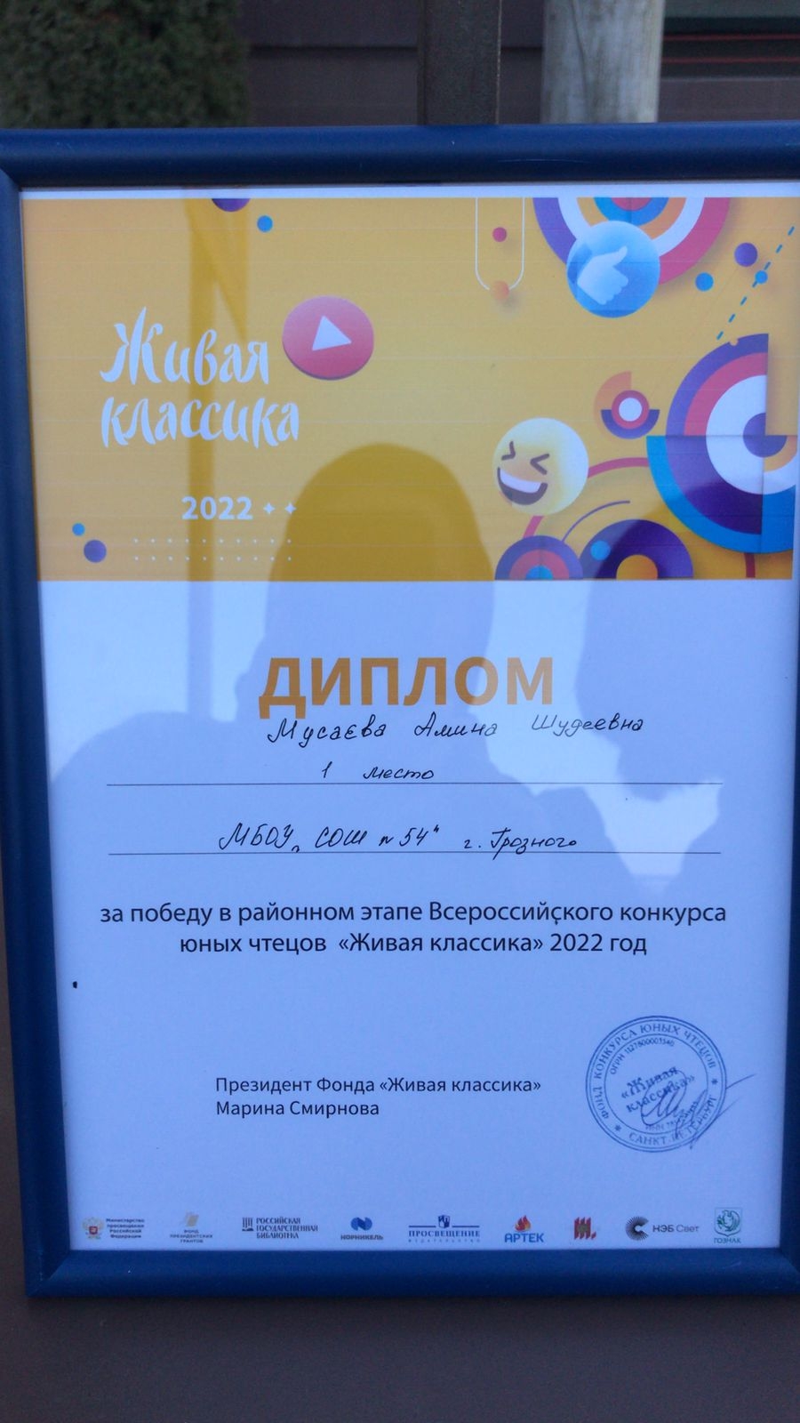 Победителем районного этапа конкурса стала ученица МБОУ « СОШ 54 имени Хасана Кааева» Мусаева Амина, она будет представлять нашу школу на городском туре «Живой Классики». Жюри высоко оценило артистический талант и мастерство Амины. Это закономерно, она несколько месяцев готовилась к этому конкурсу под руководством учителя русского языка и литературы Курбановой Рузаны Хамзатовны .