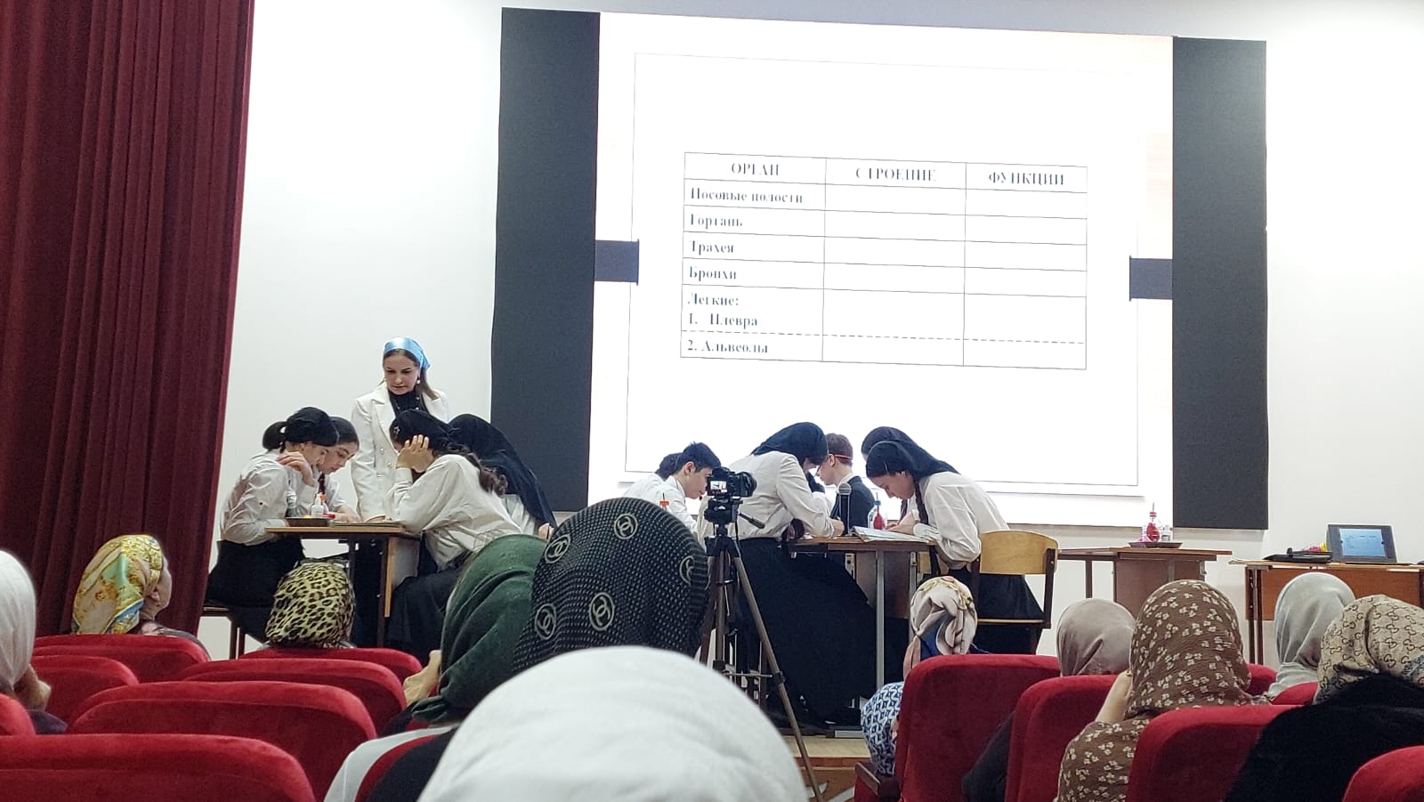В рамках реализации проекта "Уроки на сцене " на базе ГБУ ДПО «ИРО ЧР» 12.12. 2023 года был проведен урок биологии,тема урока: «Дыхание и его значение. Органы дыхания». Урок, который состоялся на сцене призван пролить свет на важность дыхания для жизни и рассказать об органах дыхания человека и их функции.Урок помог понять,что дыхание – это ключевой процесс в организме каждого живого существа, и без него жизнь невозможна. На уроке мы рассмотрели,как происходит дыхание, почему органы дыхания так важны и какие факторы могут влиять на этот процесс.