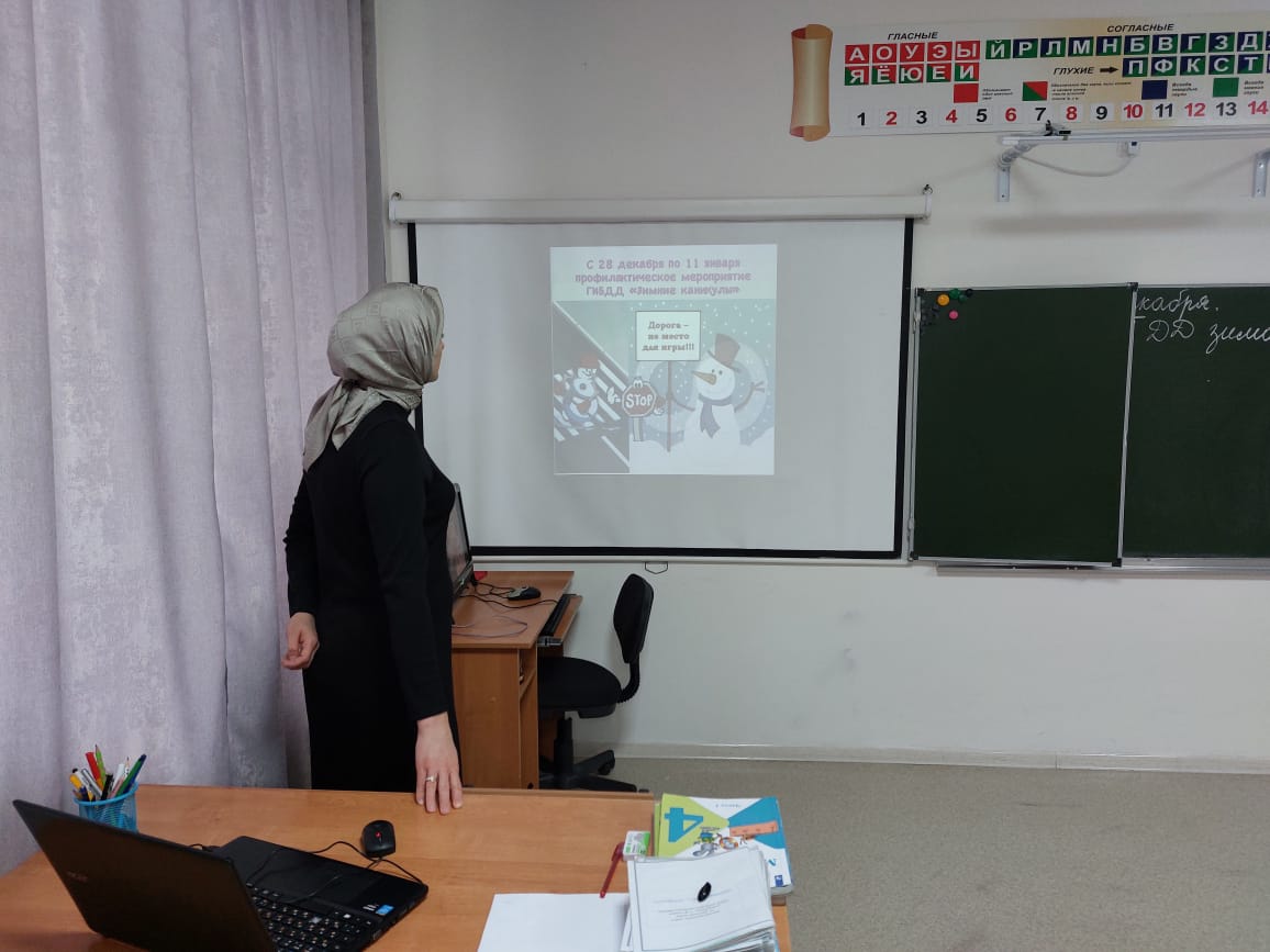 18.12.2023В рамках реализации федерального проекта «Успех каждого ребенка» нацпроекта «Образование» накануне на базе МБОУ «СОШ №54 им. Хасана Кааева» г. Грозного было организовано мероприятие на тему «Соблюдаем ПДД зимой». В нем приняли участие обучающиеся начальных классов.