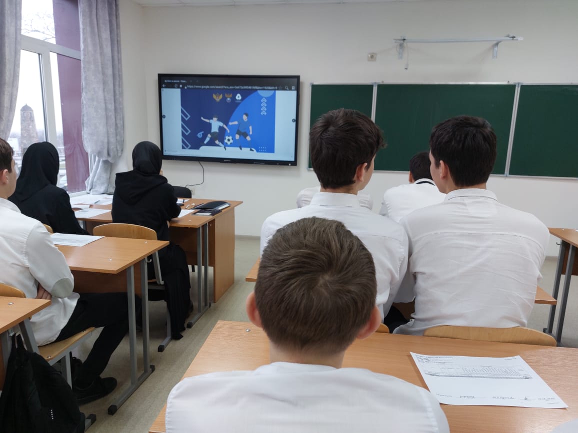 16.02.2024Обучающиеся МБОУ «СОШ №54 им. Хасана Кааева» г. Грозного стали участниками Всероссийской акции «Футбол в школе».