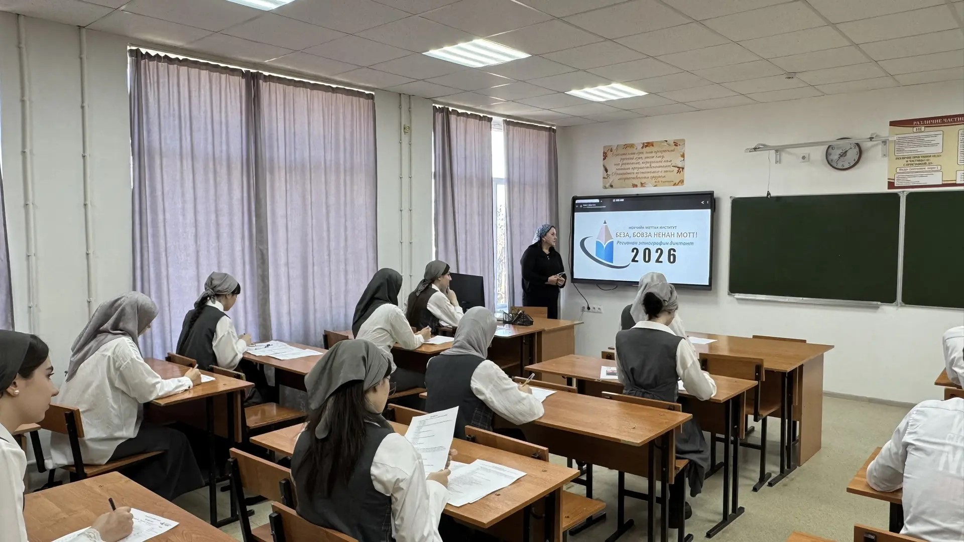 Сегодня в МБОУ «СОШ № 54 им. Хасана Кааева» г. Грозного прошёл региональный этнографический диктант «Беза, бовза ненан мотт!», приуроченный к Международному дню родного языка. В диктанте приняли участие обучающиеся и учителя, продемонстрировав интерес к родному языку, истории и культуре своего народа. #ЭтнографическийДиктант #БовзаБезаНенанМотт #МБОУСОШ54имХасанаКааева #Грозный #РоднойЯзык