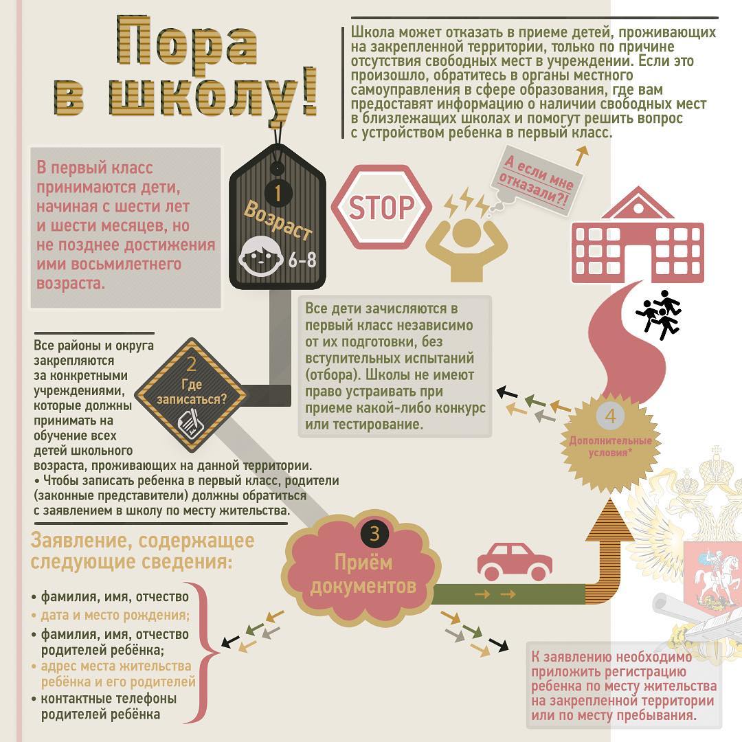 25.01.2019Для родителей будущих первоклассников наступает волнительная пора. Не позднее 1 февраля во всех российских школах должна открыться запись в 1 классы. Зачисление малышей оформляется приказом директора в течение 7 рабочих дней после приема документов. Вся неоюходимая информация на сайте.