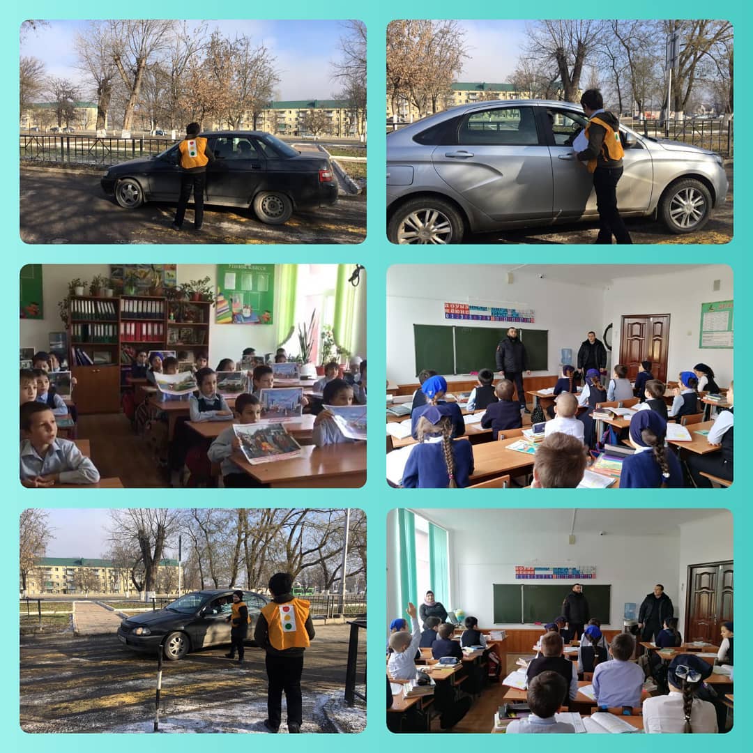 Классные руководители Алдамова М.М. и Бекбулатова Х.Т. подготовили классные часы, на которых дети с большим интересом делились своими знаниями ПДД и задавали вопросы инспектору, также во всех классах начального звена проведены пешие экскурсии по безопасному маршруту «Дом-Школа-Дом».17 января активисты отряда «ЮИД» провели акцию, где они раздавали памятки водителям.ПДД изучаются школьниками не только в ходе организации и проведения воспитательной работы, но и учебной( в рамках предметов Окружающий мир и ОБЖ в 5-11 кл.)