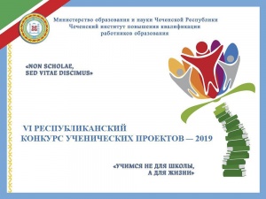 07.05.2019ВНИМАНИЕ! VI РЕСПУБЛИКАНСКИЙ КОНКУРСУЧЕНИЧЕСКИХ ПРОЕКТОВ –- 2019! УВАЖАЕМЫЕ КОЛЛЕГИ! Чеченский институт повышения квалификации работников образования совместно с Министерством образования и науки ЧР проводит VI РЕСПУБЛИКАНСКИЙ КОНКУРС УЧЕНИЧЕСКИХ ПРОЕКТОВ –- 2019 , проходящий под девизом «NON SCHOLE, SED VITAE DISCIMUS»/ «УЧИМСЯ НЕ ДЛЯ ШКОЛЫ, А ДЛЯ ЖИЗНИ».Цель проведения Конкурса – развитие и совершенствование разноуровневой системы проектной и исследовательской деятельности обучающихся в образовательных организациях Чеченской Республики. В 2019 году в Конкурсе принимают участие индивидуальные и командные проекты обучающихся 5-11-х классов общеобразовательных учреждений Чеченской Республики. Количество проектов, представленных от одного образовательного учреждения, не ограничено. Конкурс проводится в период с 5 мая по 1 июня 2019года.Основные этапы проведения Конкурса:• I этап – приём заявок, представление разработки и реализации ученического проекта для участия в Конкурсе – с 5 до 20 мая 2019 г.;• II этап – очный этап Конкурса – 1 июня 2019 г.:публичная презентация Проектов;подведение итогов Конкурса.Заявки для участия в конкурсе присылайте на электронный адрес elita-x@mail.ruПоложение о конкурсе размещено на сайте ЧИПКРО www.govzalla.ru/Контактные телефоны:8(8712) 21 22 24 – приемная ЧИПКРО8 929 887 38 57 – ведущий научный сотрудник ЦИТО ЧИПКРО Адаева Э.А. 8 928 745 9116 – проректор по связям с общественностью Исламова М.И.