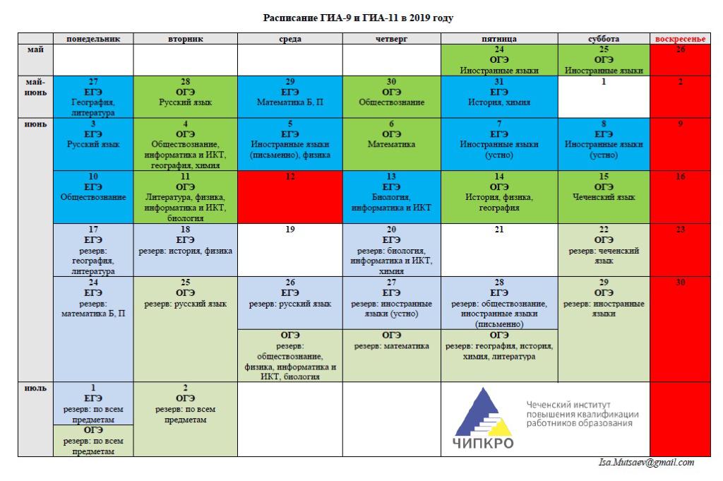 График проведения ГИА 2019